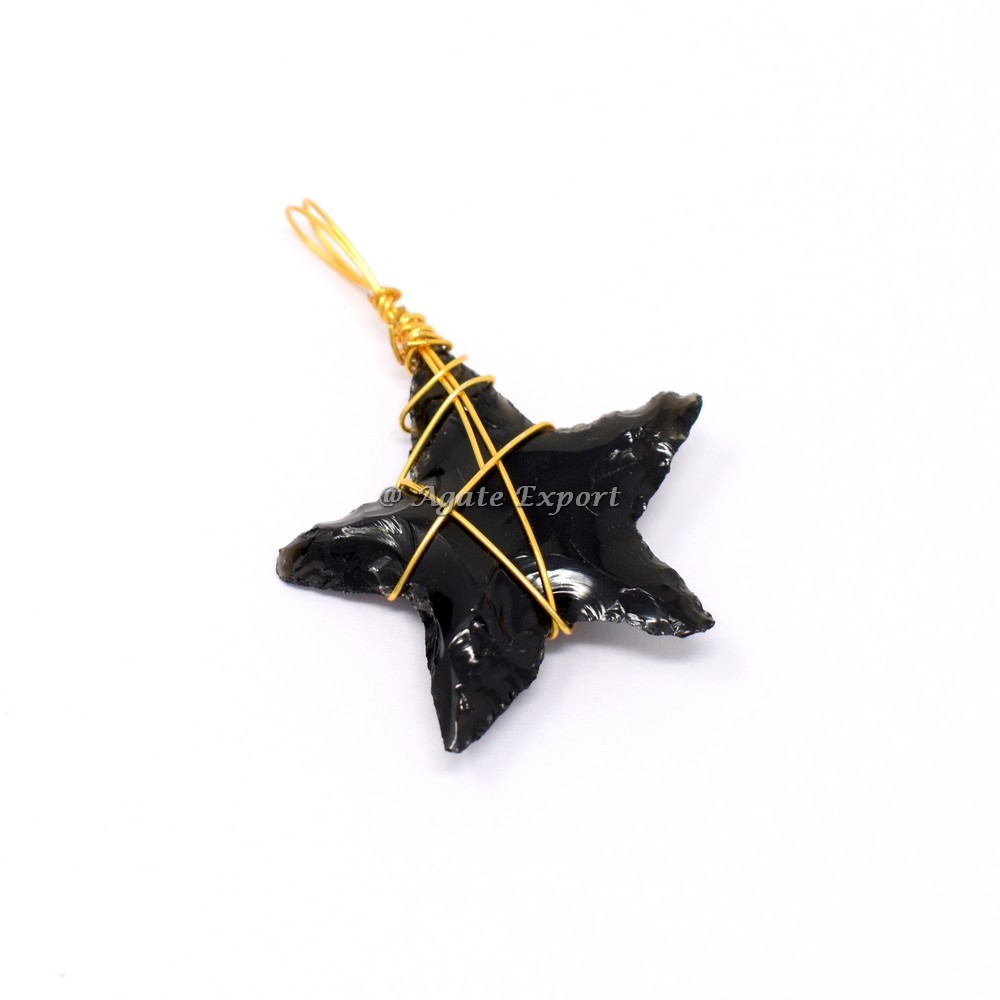 Shop for Black Obsidian Start Golden Wire Wrap Pendant at low price. Black Obsidian Stone is a powerful cleanser of psychic smog created within your aura, and is a strong psychic protection stone. This stone has powerful metaphysical properties that will help to shield you against negativity. The energy of these stones may stimulate the gift of prophesy and may boost precognition. Obsidian is a very historical gemstone that has been used as a good luck charm from ancient times. This gemstone is good for people that can be influenced easily or people with sensitive heart. It is a very gentle stone that provides a sense of calm to the holder and helps to balance energy and happiness. This stone helps you to see the positive in any situation and guide you to a sense of inner strength you might not have known was there. It is also lucky especially when playing games like cards. Generally, the pendant has been reported to instantly boost energy levels & increase mental fitness. The other reported benefits of the pendant include: increasing stamina, protection from harmful electromagnetic radiation, improving sense of balance, and increasing resilience to stress.