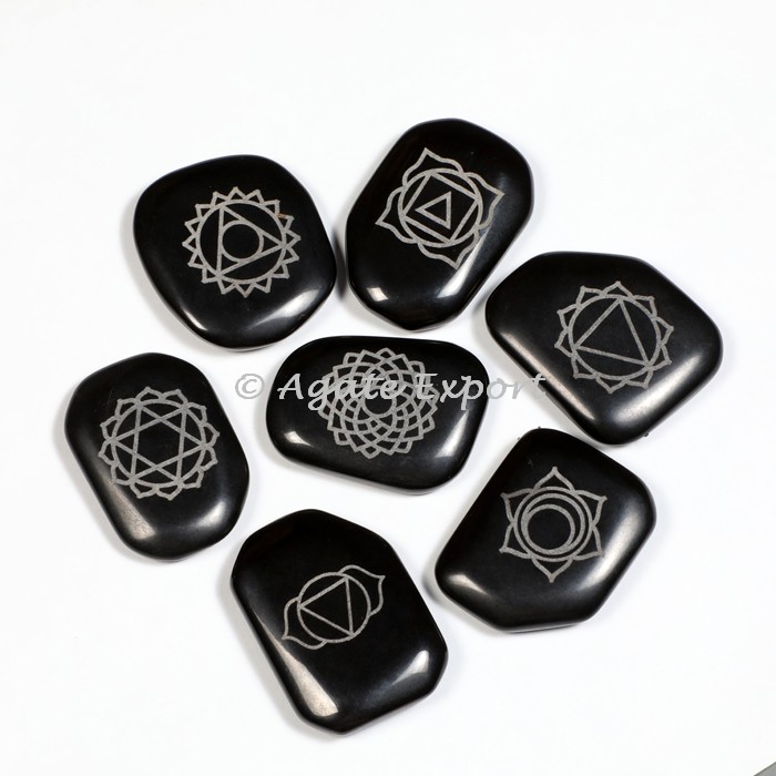 Black Agate Antique Engraved Chakra Set
